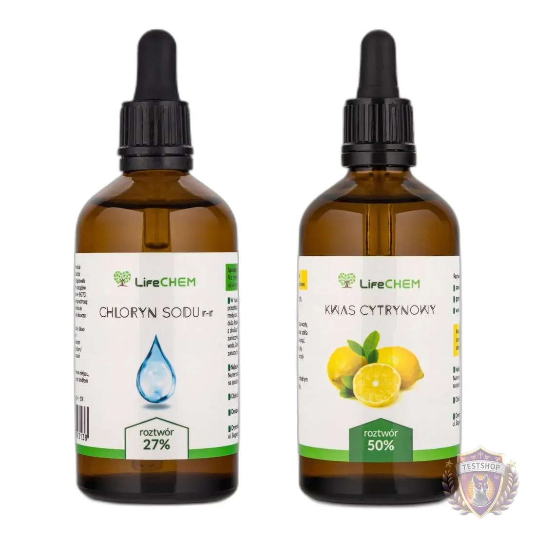 • Czystość: 27% dla chlorynu sodu, 50% dla kwasu cytrynowego
